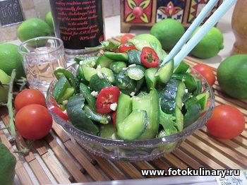 и... наливаем, что ли... Потому как у нас все готово! Огурчики уже маринованны, очень ароматные, вкусны и совершенно готовы! Угощайтесь! Для любителей остренького - то что надо. Для ценителей китайской кухни - Вы на верном пути. Приглашаю! Приятного аппетита!