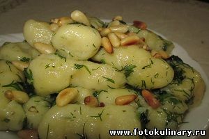 Присыпаем кедровыми орешками, и тертым сыром, по желанию. А вообще, к слову похоже ли это на ленивые вареники... очень вкусно есть ньокки и жаренным луком... (что то мне это напоминает, видимо я не права, действительно похожи!) .