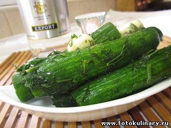 Конечно же у каждого человека свои предпочтения, но лично для меня абсолютно однозначно, что из всех закусок, малосольный огурец вне всяческой конкуренции. Он лучший. Конечно и соленый и маринованный огурец - это тоже весьма и весьма..., но!!! Если рядом лежит ароматный, хрустящий, вкусный и, настойчиво прошу заметить, что и гораздо менее вредный, малосольный, то выбор совершенно однозначный! Рука сама тянется! Тем более, что замолосолить такие огурцы дело весьма не хлопотное, а первые результаты, при известной доли нетерпения, можно получить уже через пару часиков. Итак на пол килограмма огурчиков (весьма и весьма желательно , чтобы приблизительно одинакового размера) надо половину столовой ложки соли, 5-6 зубчиков чеснока и укроп. Из совершенно необходимых ингредиентов - это все! Остальное, хоть и от лукавого, но на вкусе отражается весьма благотворно: несколько горошин черного душистого перца, немного красного стручкового острого, к укропу добавить листики смородины и вишни