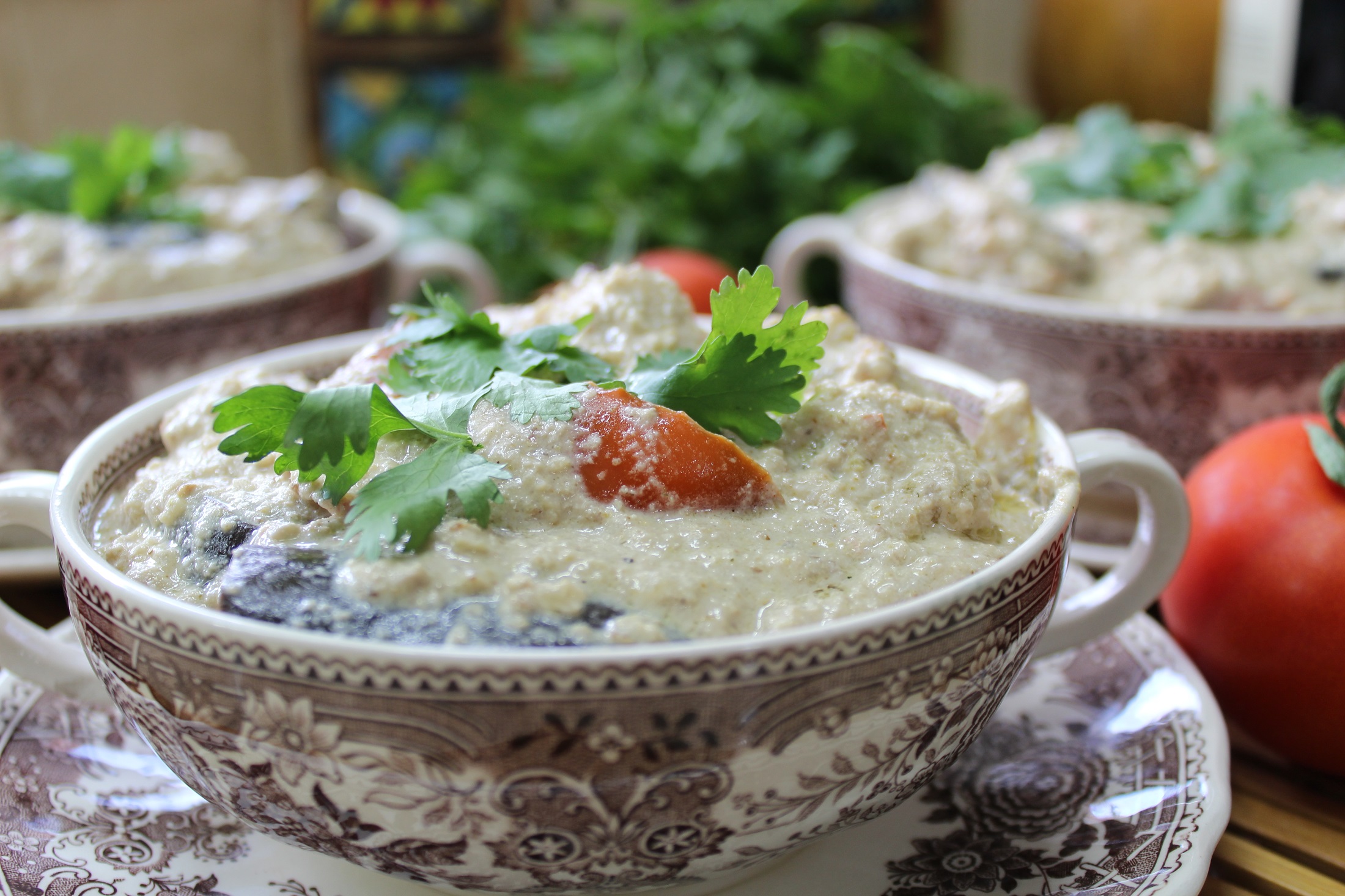 К полученной однородной смеси добавляем все специи (соль, перец, уцхо сунели, кориандр и шафран). Все хорошо перемешиваем и начинаем в несколько заходов добавлять горячую воду. Разбавляя смесь до нудной консистенции (не густая сметана). Теперь можно добавить (при желании) винный уксус и снять пробу на соль и перец.