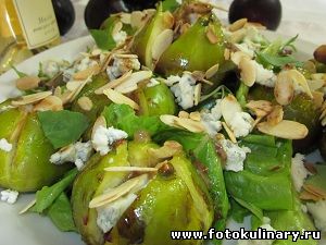 Конечно не хотелось бы повторяться, но никакое другое определение, кроме как изысканно, для сочетания инжира с сыром придумать невозможно! На мой вкус инжир гораздо ярче и вкуснее в салатах и закусках, чем в десертах. и пока сезон инжира... именно он фаворит моего стола. Надо успеть наесться и может быть даже объесться! Сегодня опять салат. Нечто подобное видела несколько лет назад в программе известного израильского шефа Аарони. Боюсь, что за давностью лет, не слишком дотошно передам его (Аарони) рецепт, но мой тоже отработан годами и одобрен всеми домашними и друзьями... А это все таки не так мало! Берем: инжир штук 12-15, горгонзола грамм 100-150, листья салата беби микс и романо, хлопья миндального ореха, оливковое масло и приблизительно столовую ложку сахара.