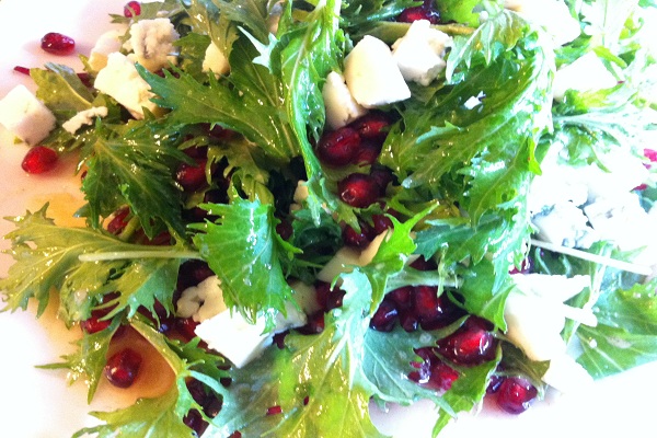 Хорошо вымытые и высушенные листья салата взбрызгиваем соусом сверху выкладываем гранат, перемешиваем (лучше руками, чтобы не помять листья), сверху посыпаем сыром и поливаем соусом. Все готово! Приятного Вам аппетита!