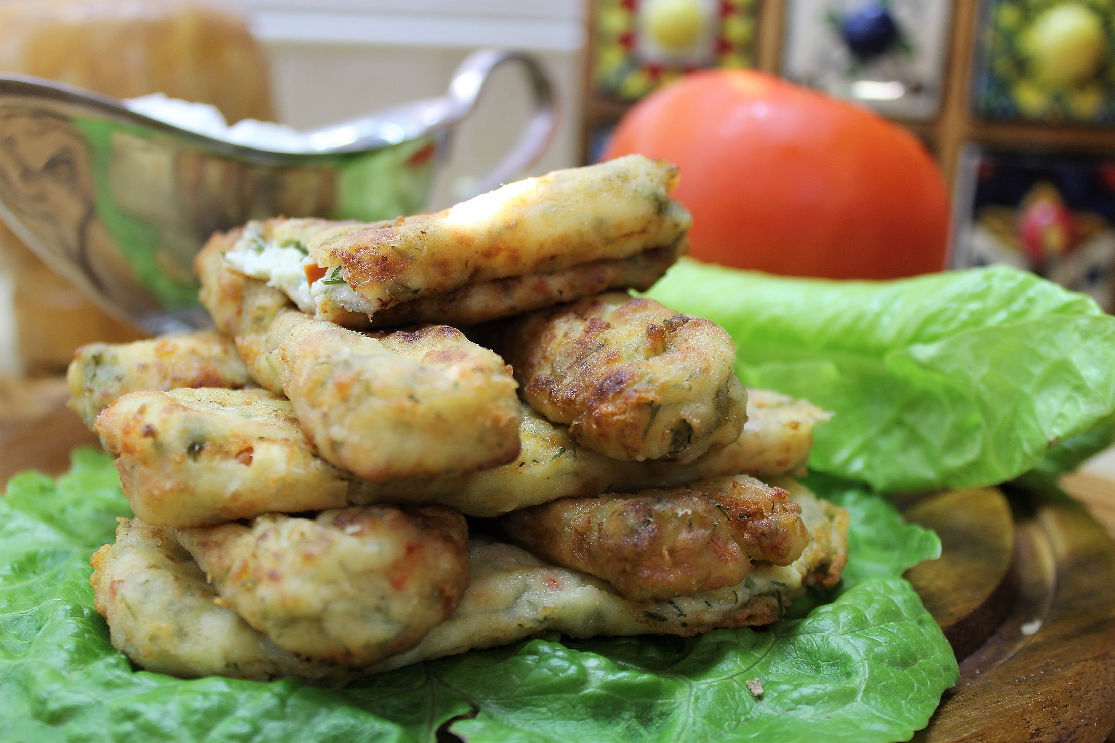 с толстым дном и растительным маслом уверенно закрывающим дно сковороды. Обжариваем палочки со всех сторон до золотистого цвета, на огне выше среднего, чтобы от обжаривания мучная корочка сразу схватывалась и палочки не растекались плавясь. ГОтовые выкладываем на бумажное полотенце, пока жарится другая партия и сразу накрываем на стол.