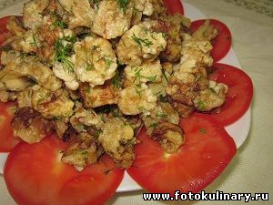 Очень мне нравиться, когда готовишь одно простое блюдо, а подавать его можешь и как закуску, и как гарнир, и как салат. Вкусно! И очень приятно (даже как то аппетитно, что ли), от крахмального кляра, похрустывает корочка. Берем: один баклажан (скорее крупненький), 2 яйца, соль, 1-2 зубчика чеснока, 2-3 столовые ложки крахмала, зелень и растительное масло для фритюра.