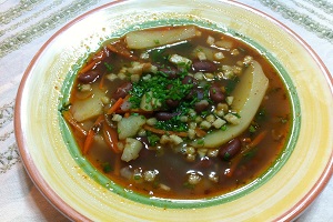 Конечно этот супчик с кондачка не приготовишь. Ну требуется тут некоторое терпение для вымачивания фасоли... Т.е. - решение о приготовлении этого супа лучше принимать вчера. Хотя если приготовить его из консервированной фасоли, то и решение может быть внезапным и время приготовления сокращенным, да и результат весьма неплох! Берем: грамм 500 грудинки, лучше на косточке, стакан сухой фасоли, 3 морковки, луковицу зелень , чеснок, соль, перец, приправу (у меня вегета), паприку (щедро) и 3 картофелины.