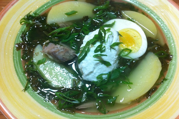 Когда картошка в супе готова, (мин 20-30) добавляем к ней мясо, лук и щавель с зеленью. Даем супу закипеть и варим минуты 2. Выключаем. Все готово. Даем супу настояться минут 10.