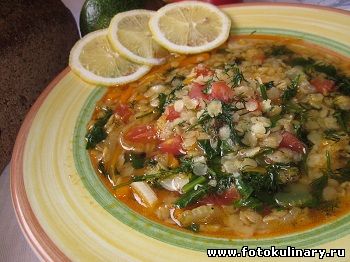 Вот еще один вариант "супа Исава". Конечно же не одну чечевичную похлебку никому не удавалось испортить лимоном! Так, что можно и подавать с ним и выдавить лимонный сок прямо в тарелку. Приятного Вам аппетита!