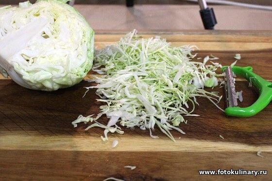 Капусту шинкуем очень тонкой соломкой.