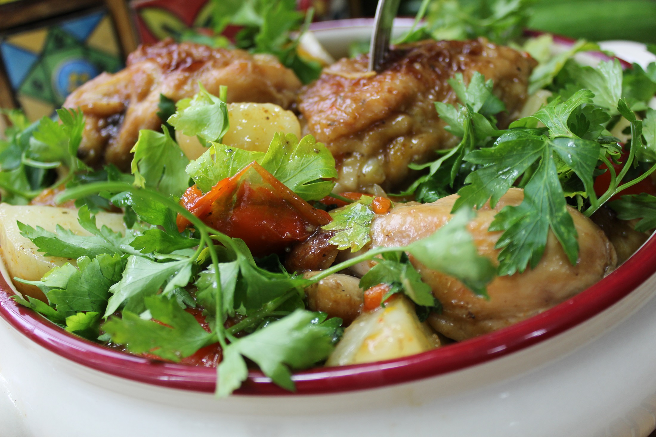 и посыпав сверху кинзой можно подавать. Повторюсь... либо с лапшой, либо с рисом, либо... Вот так... С нашей любимой... с картошкой. Получается действительно очень вкусно. Блюдо, которое совершенно не стыдно подать на праздничный стол. Продукты для него очень доступны, готовить очень просто и быстро, так что оно может стать постоянным на Вашем семейном столе.