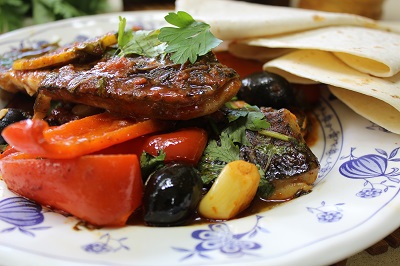 Это уже каждый сам себе пусть наковыряет, что ему по нраву и в каком количестве, но, поверьте, остатков не останется! Уйдет все! Улетит! Рядом еще мисочку с отварным рисом... И праздничный ужин на столе! Попробуйте! Все вкусы и ароматы ближнего Востока на одной тарелке! Наслаждайтесь! И приятного Вам аппетита!