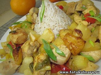 Как гарнир идеально - рис... а куда без него... Азия есть Азия... Типа, как у нас без воды... " и не туды, и не сюды..." Даже не сомневайтесь надо это Вам или нет! Это действительно очень вкусно и необычно. Жареная курица с ананасам вполне может стать Вашим фирменным блюдом. Приятного Вам аппетита!