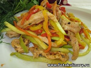 Вариантов быстро приготовить куриную грудку у каждой хозяйки найдется с десяток. Все мы уже накопили не малое количество секретов, помогающих нам приготовить это диетическое мясо максимально вкусно и сочно... Причем последнее (сочно) это особая статья для переживаний, и главное требование, удовлетворить которое в состоянии далеко не все рецепты... На помощь всегда приходят маринады. Если подобрать правильный... любое мясо можно сделать как минимум сочным. А при помощи добавления в маринад разных ингредиентов, можно придавать хорошо знакомому вкусу и восточное , и итальянское, и еще какое-нибудь, каждый раз разное звучание. Сегодня замаринуем с имбирем и соевым соусом... надеюсь, звучит по-восточному! Берем: куриную грудку, по половинке желтого и красного болгарских перцев, морковку, парочку небольших кабачков, парочку зубчиков чеснока, корень имбиря небольшой кусочек (2 на 2 см, приблизительно), кунжут (по желанию), соевый соус 3 столовые ложки, мед 1 столовая ложка, соль, перец черный и красный и растительное масло для жарки.