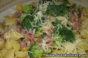 Макароны на столько вкусны и прекрасны сами по себе, что испортить их практически невозможно. А уж если удается их украсить... это почти счастье. Сегодня явно удалось! Очень сбалансированный сливочный вкус с прекрасным ароматом ветчины. Берем: подходят любые макароны (у меня сегодня кончилле) 1 пачка, сливки 15% жирности 250 мл, (1 пачка), помидоры 2 штуки, ветчина грамм 200, оливковое масло, горсточка кедровых орешек, брокколи грамм 400, сыр для присыпки, соль, 1 луковица, зелень, перец черный и орегано.