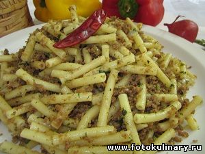 Макароны по-флотски классическое и ,наверное, самое распространенное блюдо советской кухни. Это просто отварные макароны перемешанные с обжаренным фаршем или тушенкой. Мне это блюдо очень хорошо запомнилось с детства, я была лет 8, мама уехала в командировку, а отец наварил огромную кастрюлю макарон по-флотски. Кормил нас с братом этим каждый день и перед очередным приемом этой хоть и вкусной, но уже изрядно надоевшей пищи, давал нам открытки с блюдами народов мира. Мы выбирали там что нибудь повкуснее и по экзотичнее, ставили, выбранные открытки перед собой, обреченно ели, что нам давали (макароны по-флотски, естественно) и представляли, что едим то, что было на выбранной лично нами открытке. Кстати, было очень вкусно! До сих пор нежно люблю эти самые макароны. И с тушенкой люблю... и с обжаренным фаршем, но фаршем сделанным исключительно из отварного мяса... мне так, однозначно, вкуснее.