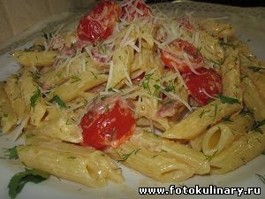 Хорошо перемешиваем, с удовольствием и предвкушением следим, чтобы каждая макаронинка получила свою норму счастья в виде соуса. Протушиваем все вместе пару минут.. и...
