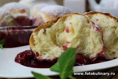 прошу к столу. Ароматная булочка с вишневым сиропом. И заметьте... все было очень не хлопотно, но уверяю, очень вкусно! Пушистые, нежные, воздушные, ванильно- лимонно ароматные домашние булочки и вкуснейший вишневый сироп. У Вас есть к чему придраться? И у меня! Угощайтесь! Пеките на здоровье! Удачной Вам выпечки и приятного аппетита!