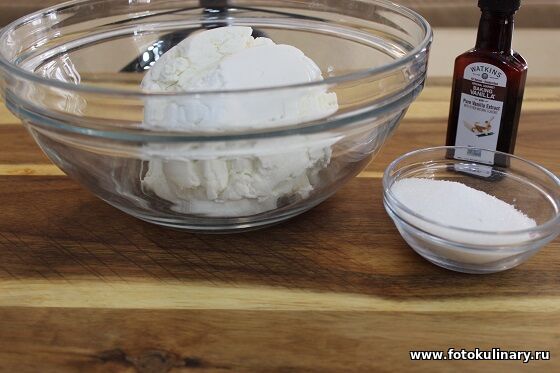 Творог смешиваем с сахаром и ванилью.