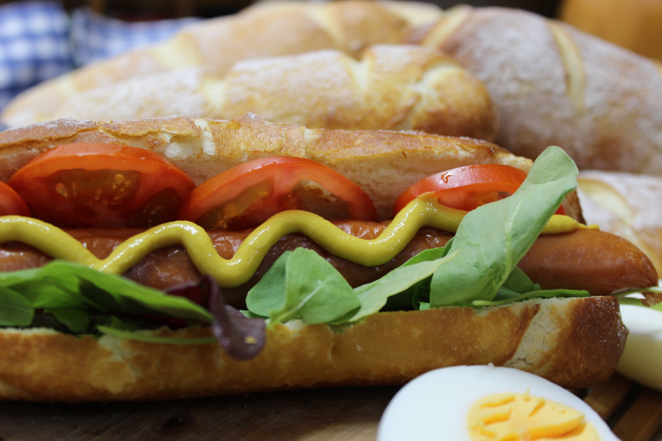 Мякиш получается очень пышным и нежным. Корочка после водных процедур более закаленная и ей не составляет труда не раскиснуть и размокнуть от щедро засунутых в нее не только сосисок, но и сочных овощей и соусов. И даже не говорите мне, что проще такие булочки купить... Даже не вижу смысла сравнивать... Уж извините, но такие булочки можно только приготовить! Дома. Быстро. И очень просто. А вот теперь ... приятного Вам аппетита!