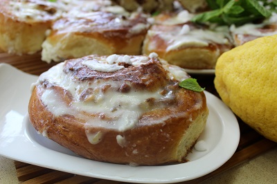 Свежеиспеченные, еще горячие булочки щедро промазываем сметанным кремом