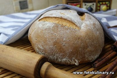 На подошедшей буханочке острым ножом, чтобы не опустить хлеб, делаем надрезы (выпускаем дьявола) и выпекаем в заранее разогретой духовке до готовности... минут 40... до сухой спички... до характерного глухого звука при постукивании.