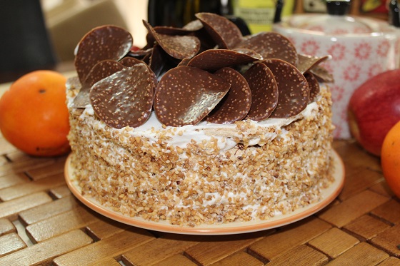 Традиционно этот торт украшают тертым шоколадом. Но тут уж никто Вам (да и мне) не указ. Украшаем как можем... чем можем... И в зависимости от ситуации. Потому как по вкусу этот торт вполне застуживаем быть поданным на праздничный стол, так что и украсить можете его от души... Дорого, богато! Пол часика в холодильнике и это все, что нужно, чтобы оценить вкус по достоинству. Угощайтесь! И приятного Вам аппетита!