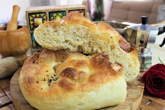 До готовности, золотистости и даже местами аппетитной подгорелости. Ну а теперь, если есть терпенье, то на решетки даем немного таки остыть, а нет... так отрываем и наслаждаемся прямо сразу. Сейчас. С пылу с... Потому, что вкуснее такого хлеба, по-моему и быть ничего не может. Такой нежно хрустящей корочки, такого пышного ноздреватого, чуть резинового пупырчатого мякиша. Это итальянская сказка. Сказка у Вас на кухне. Пеките на здоровье и приятного Вам аппетита!