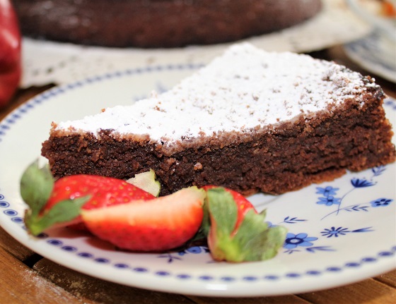 И уже остывший присыпаем сахарной пудрой... типа украшаем! Именно так традиционно и выглядит торт капрезе