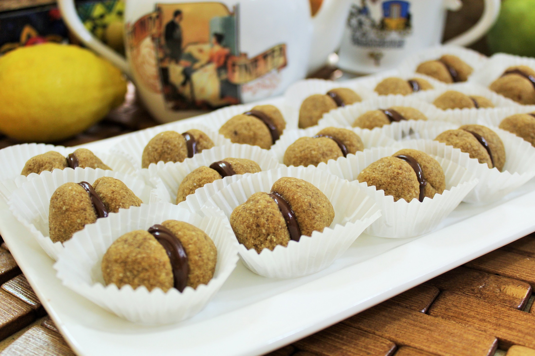 Из этого теста формуем небольшого размера (1 чайная ложка приблизительно) шарики и выкладываем их на противень застеленный пекарской бумагой.