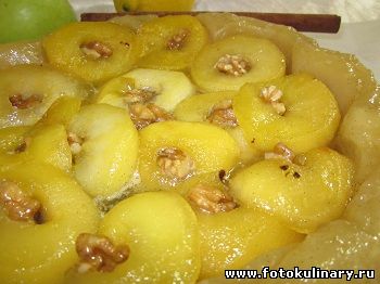 Яблочный пирог всегда очень удачное решение для десерта. Особенно если делается он очень просто, выглядит крайне эффектно и плюс ко всему имеет такое возбуждающее название и мировую известность классического французского блюда. Абсолютно никаких шансов пройти мимо! Особенно, если Вы поклонник яблочных десертов. Впрочем в данном случае и сама идея переворачивать пирог начинкой вверх тем более ценна, что эту самую начинку можно изменять по вкусу да и по сезону. Например на сливы, абрикосы, персики. А если вообще оторваться от идеи десерта, то и закусочный пирог приготовленный по принципу Татр Тарена, может оказаться очень впечатляющим. Так что есть смысл освоить принцип, а там глядишь и развернемся!