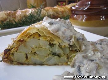 Штрудель запекаем до золотистости и конечно до картофельной готовности. Вполне можно зубочисткой ткнуть в штрудель и понять как мягко она входит в уже готовую или чуть жестковатую начинку. И все можно подавать. Кусочки мягкого, ароматного картофеля, тянущиеся нити вкусного сыра, хрустящая корочка нежного тонкого теста и мягкая, не навязчивая сливочность грибов.... Очень гармоничное и просто очень вкусное блюдо. Присоединяйтесь, будет вкусно! Приятного Вам аппетита!