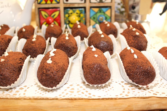 А вот теперь можно присыпать их какао порошком, зубочисткой сделать пару тройку "дырочек" и отсадить в них оставленный белый крем (типа ростки... картофельные. думаю нигде в мире никто бы не догадался, что эти белые "козявки" означают. )