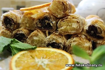 Присыпаем сахарной пудрой и наслаждаемся. Тонкое, нежное, хрустящее, ломкое и от корицы очень ароматное, невесомое тесто и нежнейшая марцепаново шоколадная с волшебными коньячными нотками начинка. Рука сама тянется взять еще и еще кусочек! Очень трудно удержаться... хрустишь и хрустишь один кусочек за другим. Вкусно! Делать несколько минут... Пожалуй, прямо сейчас будет вторая порция! Присоединяйтесь! Удачной Вам выпечки и приятного аппетита!