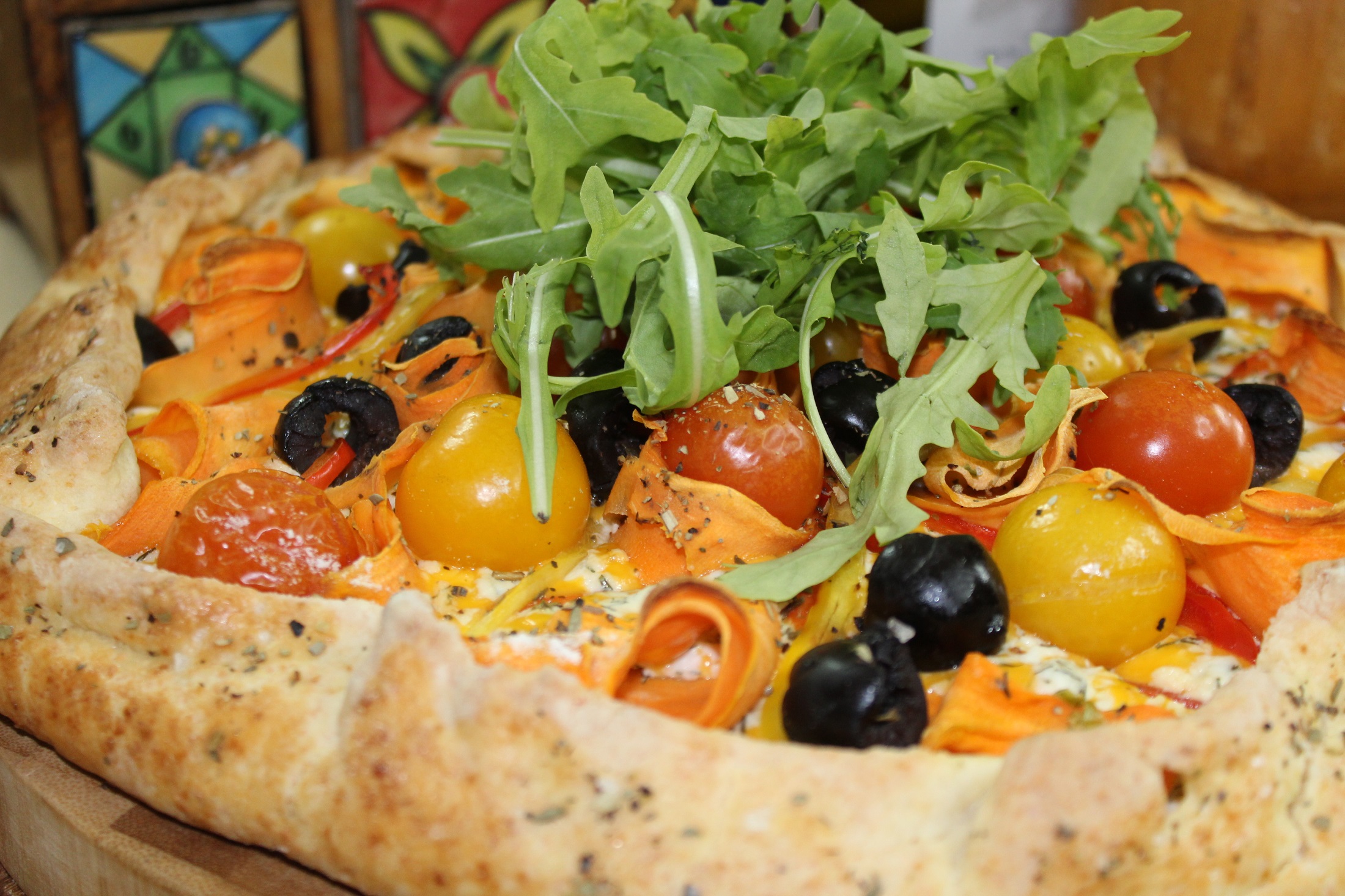 томаты и оливки. Присыпаем острым перцем и подгибаем чистые борта наверх, формуя галету.