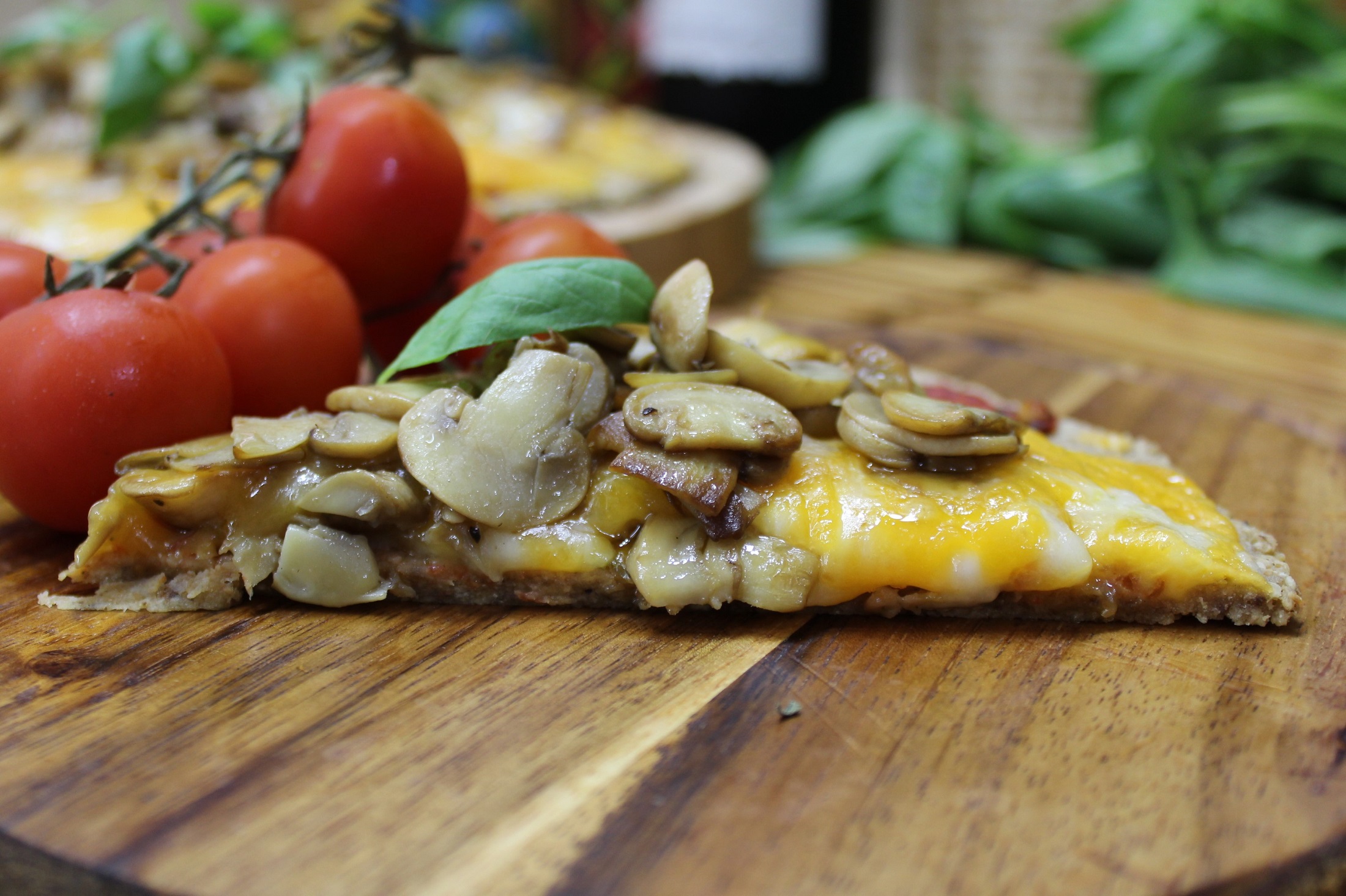соус, половина сыра, часть начинки (у меня это обжаренные грибы) и сверху остатки сыра. И опять в духовку