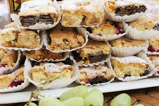Готовые пироги остужаем на решетке, после этого освобождаем от формы и нарезаем на порционные кусочки.