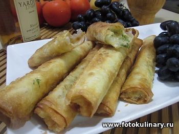 естественно само тесто фило (еще его называют "юфка", если нет возможности купить - готовим самостоятельно - вытяжное тесто).