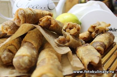 скатываем рулетом, как сигару. Кончик смачиваем в воде и приклеиваем, чтобы пирожок не раскрылся во время жарки.