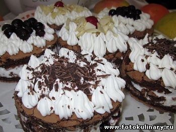 Готовые пирожные украшаем сверху оставшимся кремом и всем остальным, что подсказывает Вам Ваша фантазия (шоколадом, орешками, фруктами, лепестками) Все это может быть весьма эффектно и уж точно очень вкусно! Так что удачной Вам выпечки и приятного аппетита!
