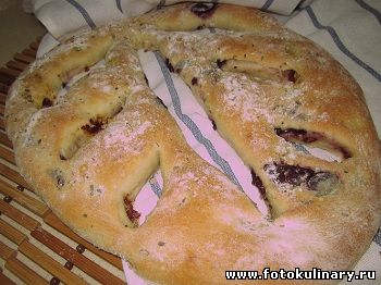 Конечно же фугас не самый известный французский хлеб. Уж если и говорить об хлебе и Франции, то безусловно первыми вспоминаются багет, круассан и бриошь. И вот так получается, что фугас бедный родственник не только итальянской фокаччи, но своих французских земляков. И кстати сказать, очень зря! Лично по моему вкусу, то фугас - это самый вкусный из французских хлебов. Во всяком случае он безусловно достоин того чтобы его хотя бы раз попробовать и самому понять "что почем" и " кто кого". Тем более, что делать этот хлеб под силу любому, кто готов посвятить этому увлекательному занятию несколько минут своего времени. Берем: на полтора стакана пшеничной муки 150 мл. теплой воды, по 1 чайной ложки меда, сухих дрожжей и соли и парочку столовых ложек оливкового масла. Для начинки я взяла немного вяленых помидоров, несколько оливок (кстати можно сделать и вообще без начинки, или уж положить в начинку что нибудь исключительно Вам греющим душу, например орехи, чернослив, жаренный лук, печенный чеснок). Для присыпки у меня орегано и крупная соль, но обычно берут смесь прованских трав... коих у меня в хозяйстве сегодня не оказалось.... Ну и ф... с ним!