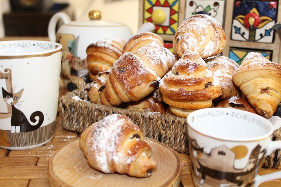 Готовые воздушные и золотистые рогалики не забываем присыпать сахарной пудрой.