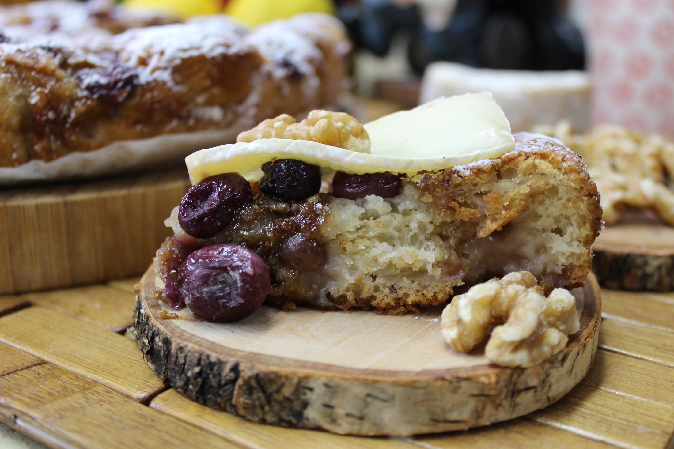 Собираем тесто с краев к центру, закрывая им виноградную начинку. Пальцами распределяем лепешку по всему объему формы, не смущаясь раздавливая при этом положенный внутрь виноград.. Даем еще минут 15-20 лепешке отдохнуть.