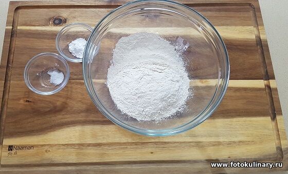 Начинаем с теста. В первую очередь смешиваем муку с солью и разрыхлителем. Любителям послаще можно добавить сахарной пудры, любителям поизысканнее - часть муки заменить на ореховую, можно добавить корицу или... цедру любого цитрусового. Выбор за Вами, вкус по Вашему...