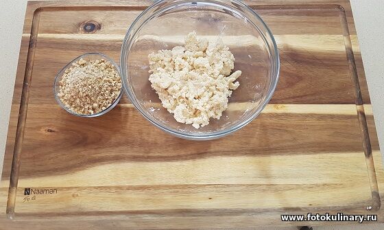 по 100г муки и дроблённых орешек, сливочного масла