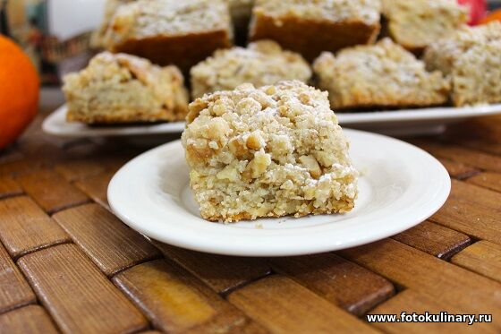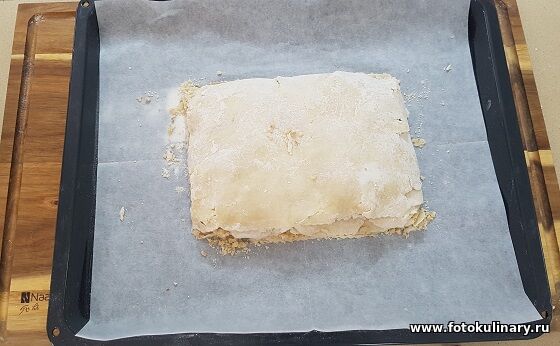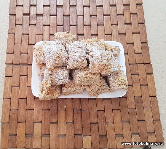 собирая весь "пирог". На последний шестой слой опять выкладываем оставшуюся присыпку, сразу надрезаем на порции и отправляем выпекаться. 180 градусов, 40-45 минут. До уверенно золотистого, аппетитного цвета.