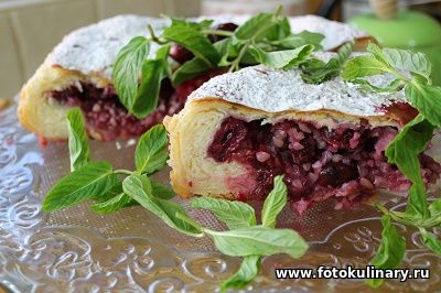 Вишневый присыпаем сверху сахарной пудрой и даем постоять и остыть. Тогда начинка не растечется, а загустеет и порадует Вас не только вкусом, но видом. Будет ровненько стоять и благоухать... пока Вы ее не запихнете в рот! Вот только там она начнет нежно таять и орехово похрустывать. О... эти несколько минут, потраченных на замешивание теста и на его раскатку, стоят того! Потрачены не зря! Очень вкусно! Да и красиво. Присоединяйтесь! Удачной Вам выпечки и приятного аппетита!