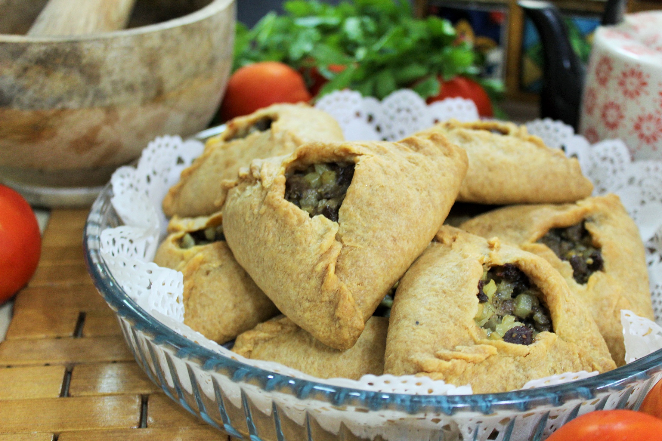 Формуем треугольный пирожок, оставив по середине дырочку для выхода пара и пройдясь по каждому шву косичкой, чтобы лучше скрепить.