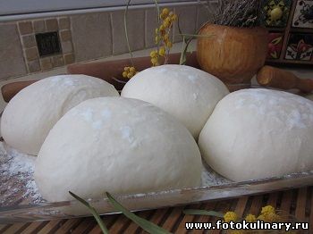 Подошедшее тесто делим на 4 одинаковые части по 200 грамм (приблизительно) каждая. Каждый кусочек подкатываем в аккуратный колобок, желательно гладенький и без швов, выкладываем в мисочку либо присыпанную мукой (что на мой взгляд предпочтительнее), либо смазанную оливковым маслом, опять накрываем полотенцем и опять томительное ожидание окончательной расстойки. Либо 3-4 часа при комнатной температуре, либо на ночь в холодильник.