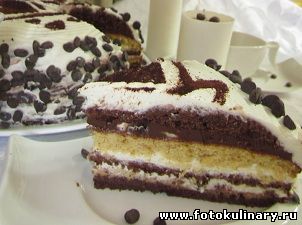 и шоколадным промазывала между первым и вторым и между четвертым и пятым коржами.
