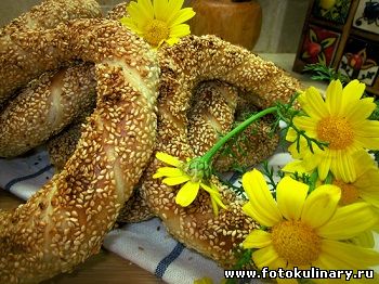 на противень отдохнуть еще минут на 15. После чего симит можно немного растянуть руками и выпекать в разогретой на 250 градусов духовке минут 8-12.