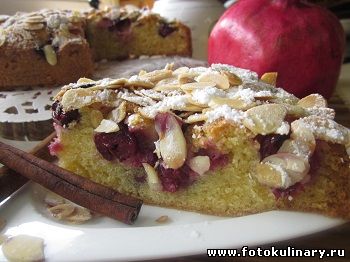 На 1 полный стакан муки (180) надо: -3 яйца, -250 грамм размягченного сливочного масла, -три четвертые стакана сахара (140-160 грамм), -1 пакетик ванильного сахара, -сахарная пудра для посыпки, -пол. чайной ложки разрыхлителя, -щепотка соли, -миндальные лепестки грамм 100-120 -грамм 400 замороженной вишни.